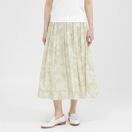 <エレガントなシルエットが印象的なフラワープリントスカート>