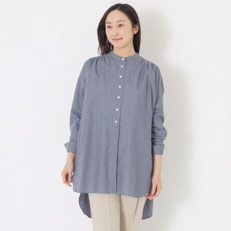 着丈は前後差のあるデザインで、ヒップラインを自然にカバーしばがら、横から見たときにも軽やかな抜け感を演出します。