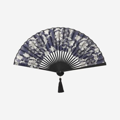 マッキントッシュロンドンのアイコンであるバイブリーフラワー柄の生地を使用した扇子です。オーガンジーの透け感が涼しげでエレガント。要にはガラス玉の付いたタッセル飾りが付いています。共生地のケースに入っており、暑い時期のギフトにも最適です。京都の老舗の扇子店で職人により丁寧に仕上げられています。