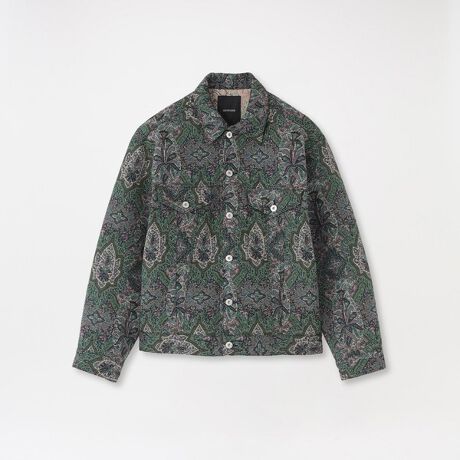 多配色で織りなされたオーナメント柄がインパクトのあるスペシャルなGジャン型ブルゾン