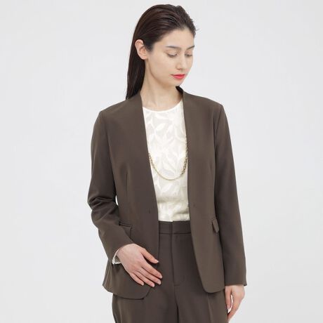 <後ろ姿まで美しいノーカラージャケット>