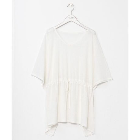 [型番:4CA-6130-2026]肌触りの良い透け感のあるニットソートップス。ウエストの紐でシルエットを調整でき、幅広い体形にフィットします。軽やかな素材感でリラックス感のある着こなしにぴったり。