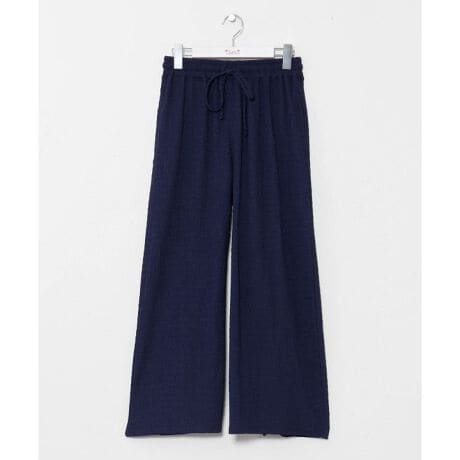 [型番:42O-6103-2026]皺になりにくくストレッチ性のある柔らかなカットソー生地を使用したフレアパンツ。肌なじみが良く、ウエストゴム仕様で快適な履き心地。リラックス感のあるシルエットが魅力です。