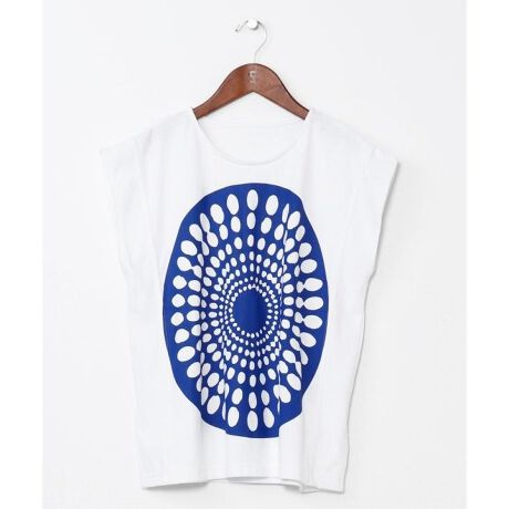 [型番:CTK-6101-2026]アフリカの伝統布「キテンゲ」に描かれる水紋のモチーフを大胆にプリントしたTシャツ。ボックスシルエットで程よいゆとりとすっきり感を両立。鮮やかな配色がアクセントになる一枚。