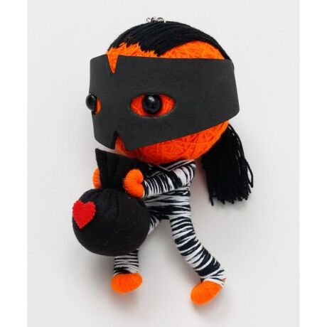[型番:TXXP6127-2026]【タイ直輸入】「僕に盗み出せないものなんてないのさ。君の心も盗んでみせる。」ゼブラ柄の衣装にアイマスクが個性的な怪盗風ファンキードールXL。タイ・イサーン地方の願掛け人形で、あなたの身代わりとして寄り添ってくれるユニークな相棒です。
