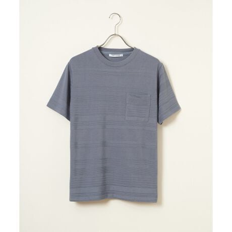 シンプルな半袖のクルーネックTシャツですが、生地の表面に凹凸のある地柄のランダムボーダーが特徴。