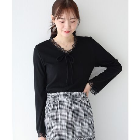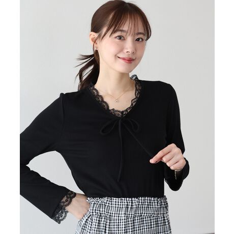 フェミニンな魅力が詰まったフロントリボンレースカットソー