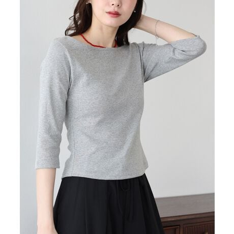 すっきり見えするカジュアルフェミニンな7分袖スリムカットソー