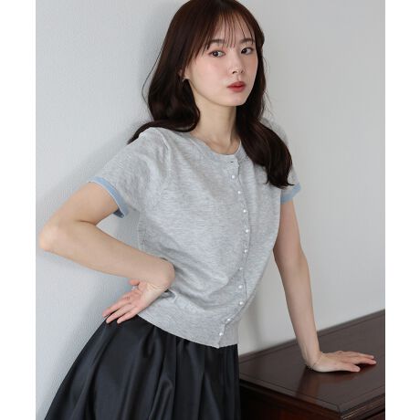 パールボタン×リボン刺繍が大人ガーリーな半袖ニットカーディガン