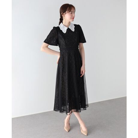 レース襟デザインのパーティーワンピース・結婚式ワンピース