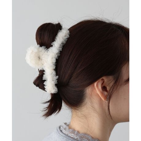 フリルチュールをたっぷりあしらった、フェミニンな魅力のバンスクリップ。