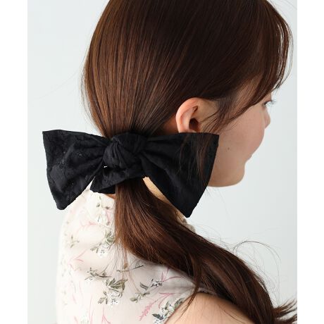 大きめで存在感のあるリボンが大人かわいいコットンレースを使用したシュシュ。
