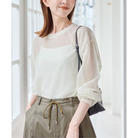 デニムやスラックス、スカートなど幅広いボトムと相性が良く、春夏のスタイリングに取り入れたい一枚です。