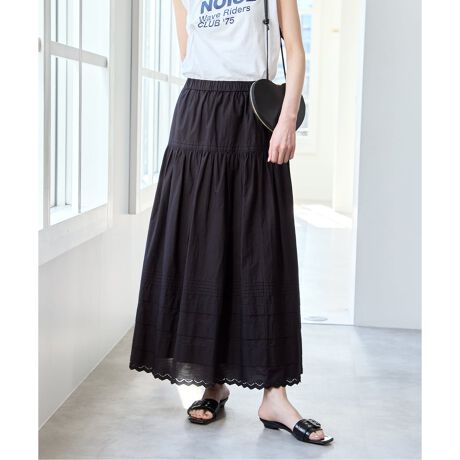 裾にはオリジナル刺繍をあしらい、スカラップ仕様でさりげないアクセントをプラス。
