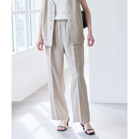 シワになりにくく、お手入れがしやすいのも嬉しいポイント。同素材のベストとのセットアップスタイルもおすすめの一着です。