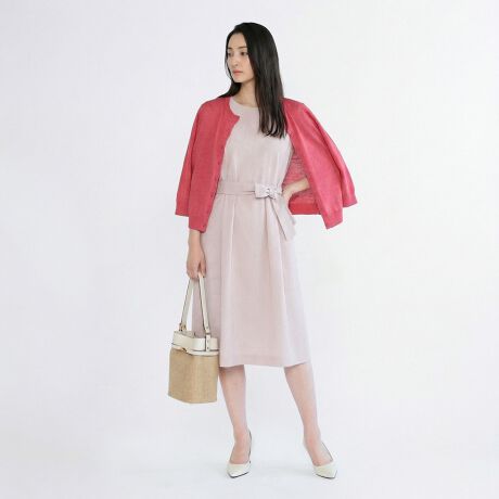 これからの季節にぴったり、爽やかなスタイリングをかなえてくれるサッカーストライプ柄のワンピースです。ほど良いハリのある素材とくびれコンシャスなリボンベルトが、女性らしいメリハリのあるシルエットを作ります。カーディガンやかごバッグをあわせたリゾートライクな着こなしがおすすめです。