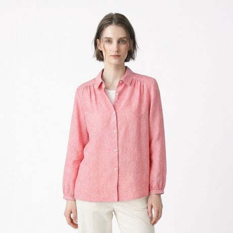[型番:72263270612]汗ばむ季節も快適に着られるシャンブレー素材のシャツカラーブラウスです。ナチュラルな光沢感と霜降り感がポイント、カジュアルときれいめのいいとこ取りが楽しめます。ロールアップのアレンジもできる長袖丈、ボタンを留めて着るのはもちろん手持ちのTシャツやカットソーの上から羽織りとしてあわせるのもおすすめです。※商品画像はサンプルを使用しているため、実際の商品と色味などの仕様が異なる場合がございます。予めご了承ください。model:T.167着用サイズ:38