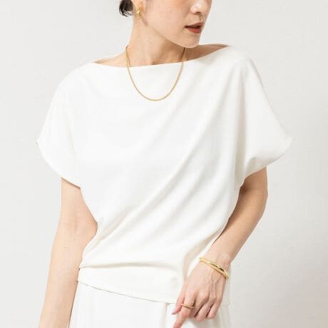 ・女性らしいドレープ感と、デコルテが美しくみえる襟の開き具合にこだわった一枚