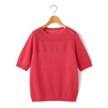 [型番:72263180642]麻100%のハイゲージニットを使用した半袖ニット。清涼感のある風合いがさらりとした着心地を叶えます。シルエットは体のラインを拾いすぎないレギュラーフィットで、肩周りに透かし編みを加えてさりげない肌見せを演出。ワントーンでありながら無難にまとまりすぎず、装いに軽やかさをプラスできるアイテムです。※商品画像はサンプルを使用しているため、実際の商品と色味などの仕様が異なる場合がございます。予めご了承ください。