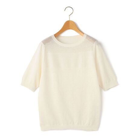 [型番:72263180642]麻100%のハイゲージニットを使用した半袖ニット。清涼感のある風合いがさらりとした着心地を叶えます。シルエットは体のラインを拾いすぎないレギュラーフィットで、肩周りに透かし編みを加えてさりげない肌見せを演出。ワントーンでありながら無難にまとまりすぎず、装いに軽やかさをプラスできるアイテムです。※商品画像はサンプルを使用しているため、実際の商品と色味などの仕様が異なる場合がございます。予めご了承ください。