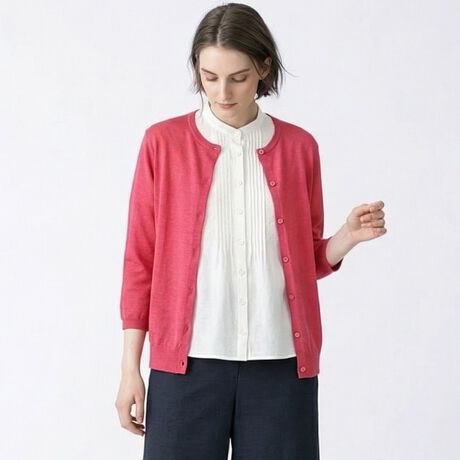 麻100%のハイゲージニットを使用したカーディガン。清涼感のある風合いがさらりとした着心地を叶えます。季節の変わり目に取り入れたり、暑い時期は空調対策や日よけとしても重宝。袖は腕を細く見せる8分丈に設定。コーディネートの邪魔をしないので、合わせるアイテムを選ばず、様々なシーンで活躍します。