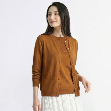 麻100%のハイゲージニットを使用したカーディガン。清涼感のある風合いがさらりとした着心地を叶えます。季節の変わり目に取り入れたり、暑い時期は空調対策や日よけとしても重宝。袖は腕を細く見せる8分丈に設定。コーディネートの邪魔をしないので、合わせるアイテムを選ばず、様々なシーンで活躍します。