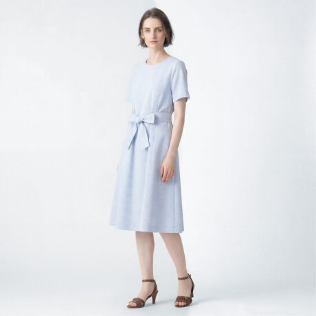 これからの季節にぴったり、爽やかなスタイリングをかなえてくれるサッカーストライプ柄のワンピースです。ほど良いハリのある素材とくびれコンシャスなリボンベルトが、女性らしいメリハリのあるシルエットを作ります。カーディガンやかごバッグをあわせたリゾートライクな着こなしがおすすめです。