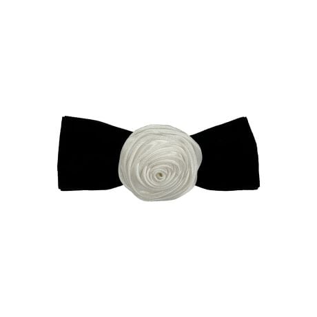 ベロアリボンにローズモチーフを添えたバレッタ。