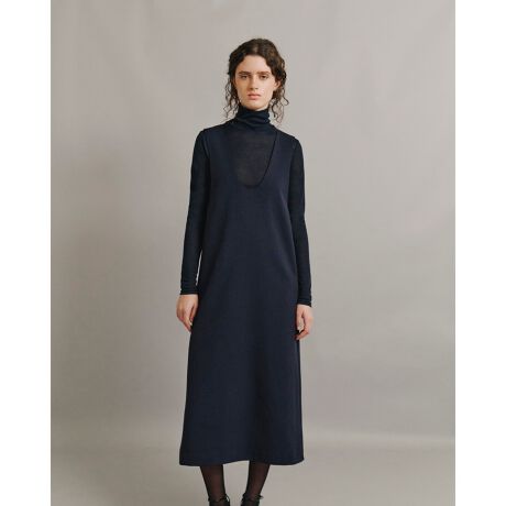 ファスナーを省いたかぶり仕様と総裏地付きの仕立てで、ストレスフリーな着心地を実現。 透け感を気にせず快適に着用できるものポイントです。