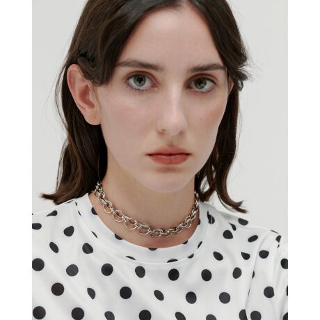丸が重なり合ったようなデザインの大ぶりチェーンネックレス。