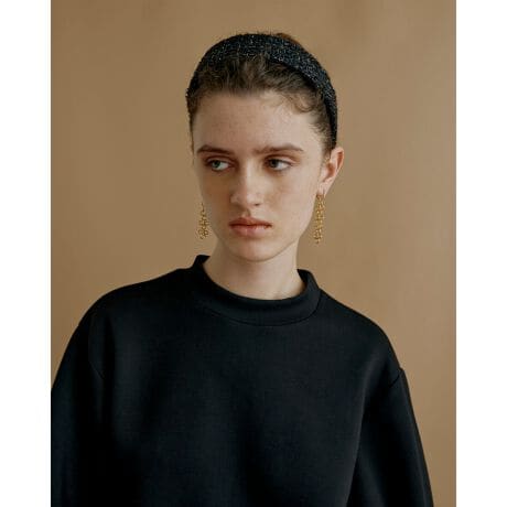 ボリューム感のある印象的なチェーンは顔周りのアクセントに。