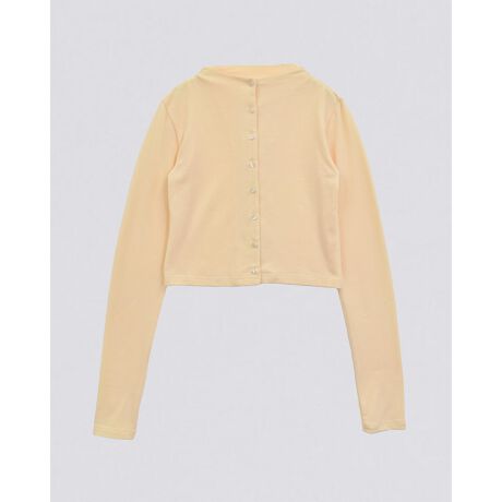 ニットのような風合いで滑らかな肌触りのスタンドネックカーディガン。