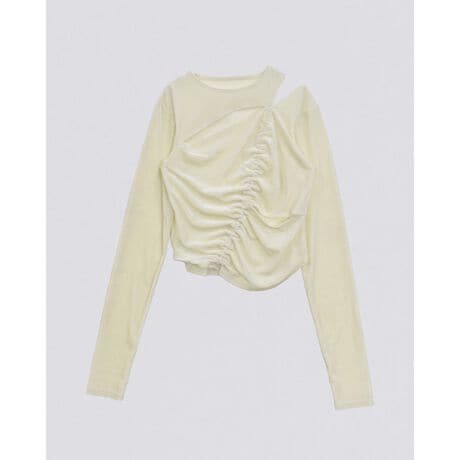 一枚で主役になれるデザイントップス。単色デザインなので、合わせるボトムスの印象でコーデのバリエーションが広がります。