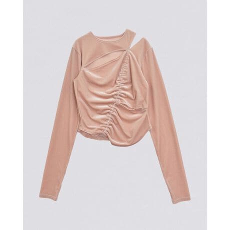 ギャザーとスリットが個性際立つベロアトップス。