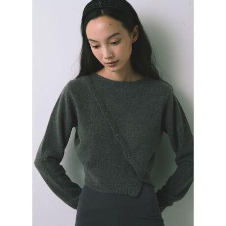 アシンメトリーに配したボタンデザインが、さり気ない個性と立体感を演出するニットトップス。