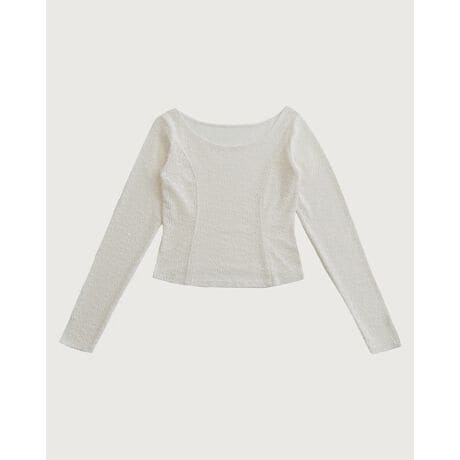 デコルテを美しく映すラウンドネックは、インナー次第で表情を変えられるのも魅力。