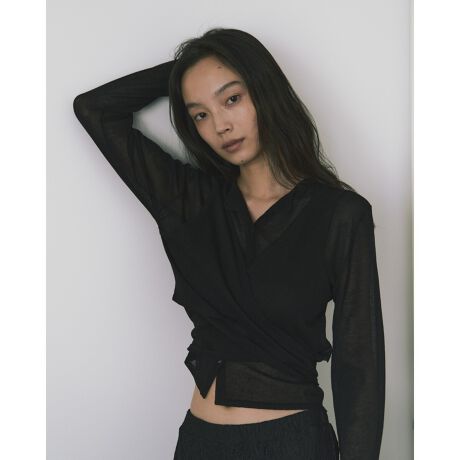 肌になじむストレスフリーな素材感で、長時間の着用も快適。シアー素材ならではの軽さが、重ねても厚みを感じさせません。