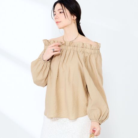 ・シルク混のシアー素材を使用したオフショルにもなるヘルシーな2WAYブラウス
