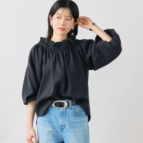 ・シルク混のシアー素材を使用したオフショルにもなるヘルシーな2WAYブラウス