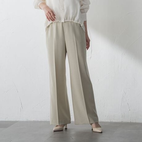 シルエットはセンタープレス入りのすっきりとしたワイドパンツ。