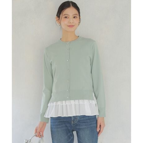 ■デザイン・小さな襟とコンパクトな着丈がシックでモダンなカーディガン。・首や肩が美しく見える絶妙なサイズ感にこだわりました。・様々なデザインのビジューボタンをアソートすることで、シンプルなデザインのスパイスに。・脇のスリットが抜け感と腰回りを自然にカバーしてくれるのも嬉しいポイント。・レイヤードアイテムとの相性が良く、特にフリルシャツコンビインナーとの合わせはおすすめです。・ボタンを全て留めてプルオーバーのように着るのもおすすめ。・適度に生地の厚さがあるのでダルっとせず好バランスがつくれ、コーディネート次第で様々な表情をみせてくれます。