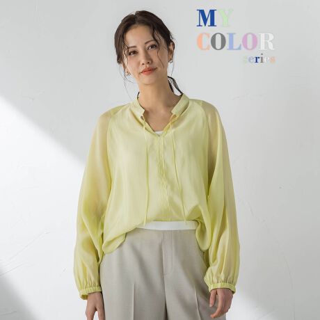 上品な抜け感を纏う、シアーバンドカラーブラウス。
