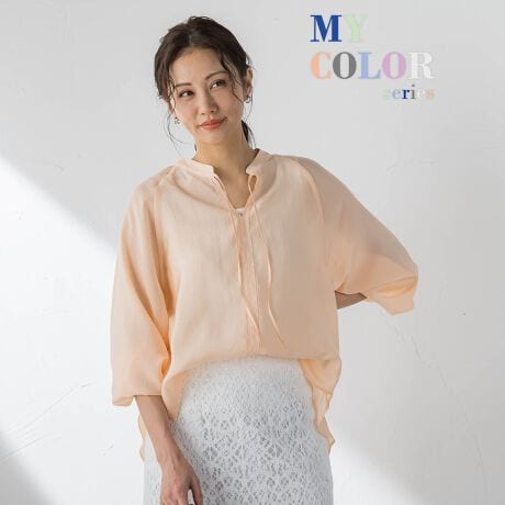 上品な抜け感を纏う、シアーバンドカラーブラウス。