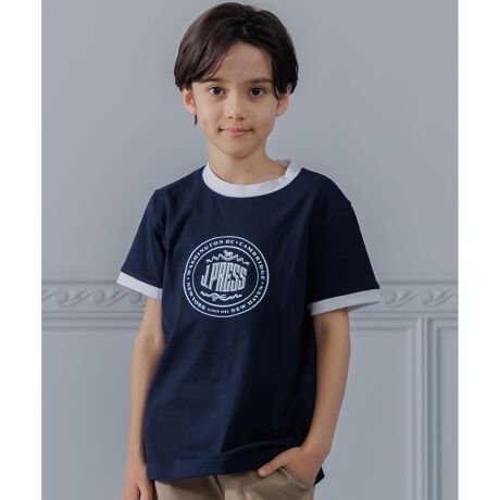 シンプルなデザインながらも大きめなJ.PRESSのロゴプリントが目を引くキャッチーな半袖Tシャツです。ベーシックなベースカラーとロゴの配色が絶妙な組み合わせのデザインです。綿100%で動きやすく快適な着心地で、通学・外遊びなどのお子様の普段使いにおススメです。首元や袖口に施されたバイカラーラインがワンポイントになっています。薄すぎず丁度良い生地感で、長い期間着用いただけます。
