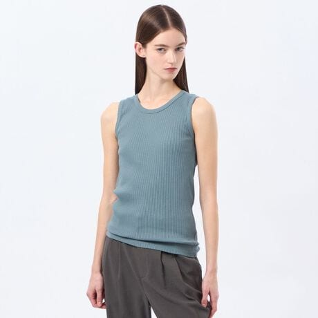 凹凸感のあるテレコ生地が肌触りの良いタンクトップ。