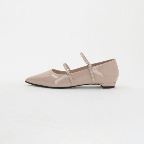 2本のストラップが上品な印象のフラットシューズ。