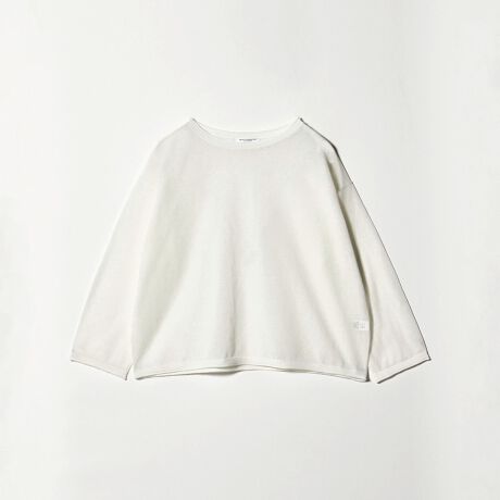 ルーズでありながら品よく決まる。ナチュラルな風合いとシアー感の麻ブレンドボートネックニット。