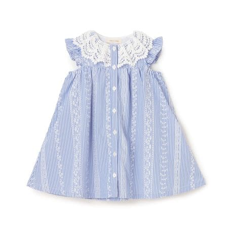 ストライプ地にレースをほどこしたさわやかな印象のワンピースです。