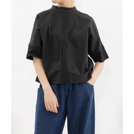 前身頃に布帛生地、後ろ身頃にはUSAコットンを使用したブラウス見えするデザイントップス。後ろボータイのトレンド感ある仕様で、リボン結びはもちろんラフに結んで垂らす着こなしもおすすめです。身頃続きのドルマンスリーブで、ゆとりがありながら品よく着られる人気のシルエット。袖口はカットソー素材で、折り返しも可能です。ラフな着心地と、ブラウスのようなきちんと感を兼ね備えた一枚です。