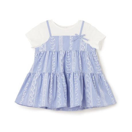 ストライプ柄にレースをほどこしたさわやかな印象のドッキングチュニックです。